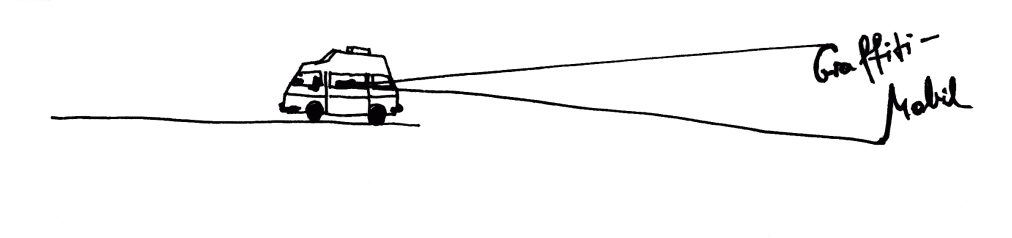 Das Graffiti-Mobil ist sowohl bewegte Licht-Installation als auch fahrendes Atelier. Von Mitte Oktober bis Mitte Dezember fährt Nikola Dicke im Rahmen des Projektstipendiums KunstKommunikation 2010 mit dem Graffiti-Mobil durch den Kreis Steinfurt. Auf Wunsch interessierter Bürger entsteht vor Ort für private Räume oder Hausfassaden eine persönliche Licht-Zeichnung, ein Graffiti für nur wenige Stunden – aus Licht.